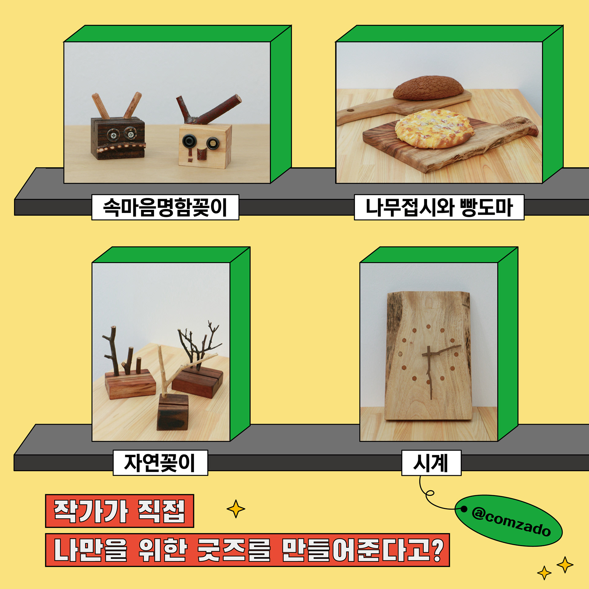 각각 작가님들을 로고와 컬러를 활용하여 오브제를 통해 담아냅니다.