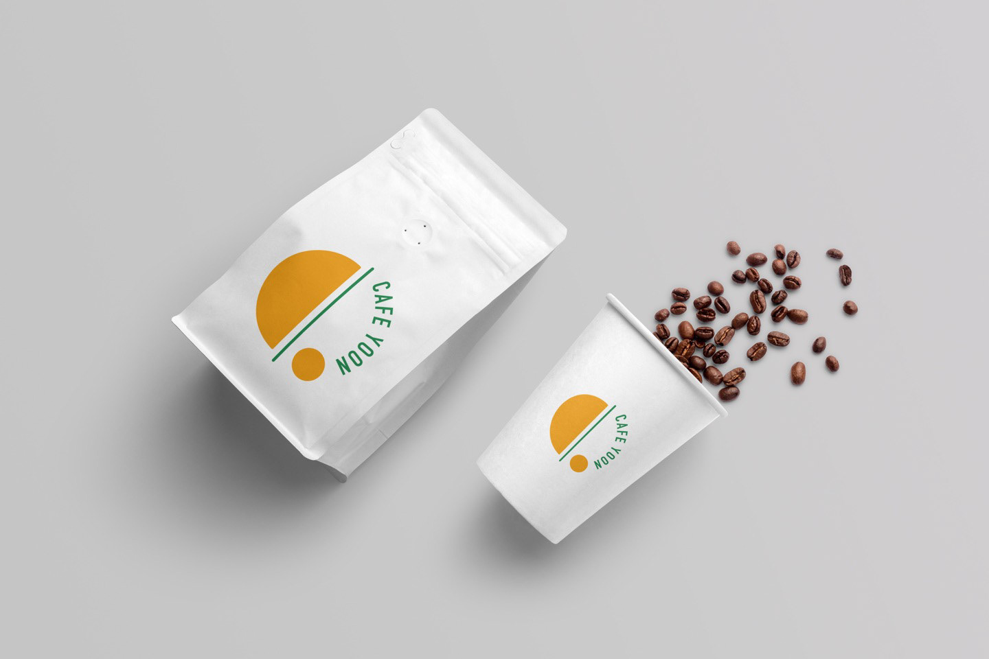 카페 로고를 통한 원두백 그리고 컵 디자인도 함께 작업했습니다.