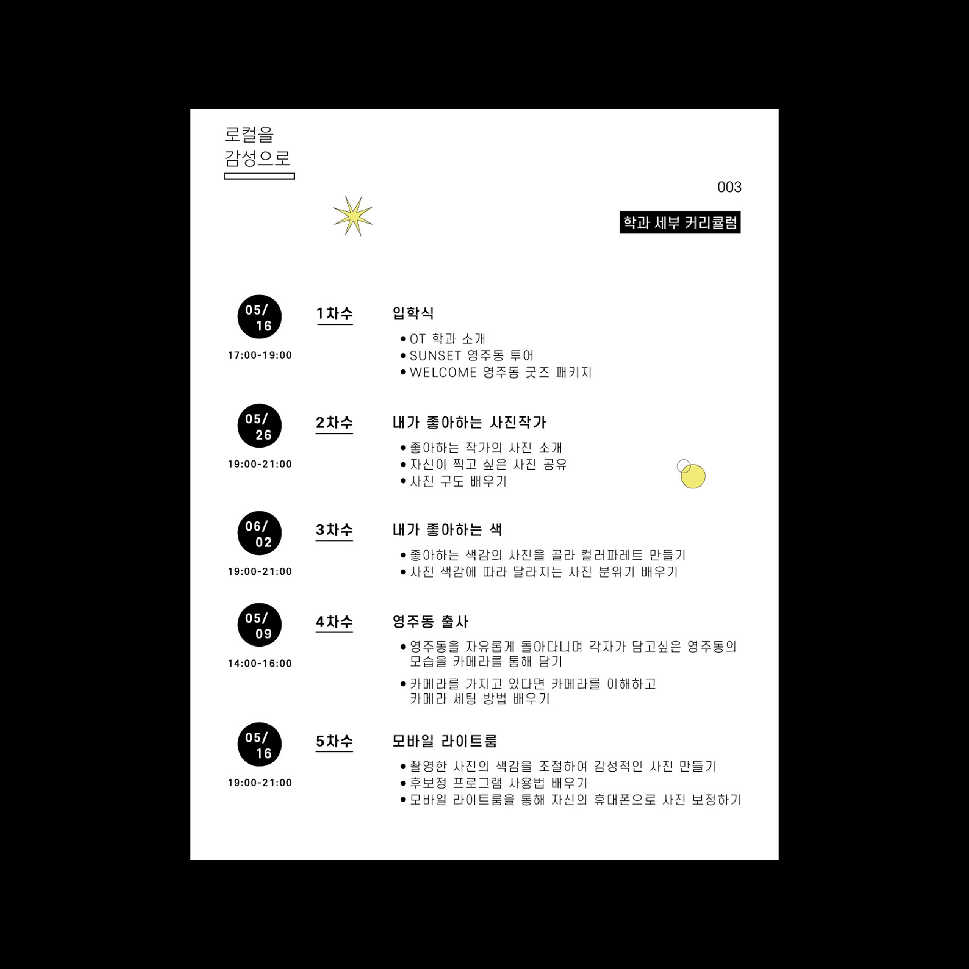 영주동에서 진행되는 청년학교 사진기록할과의 컨셉을 담았습니다