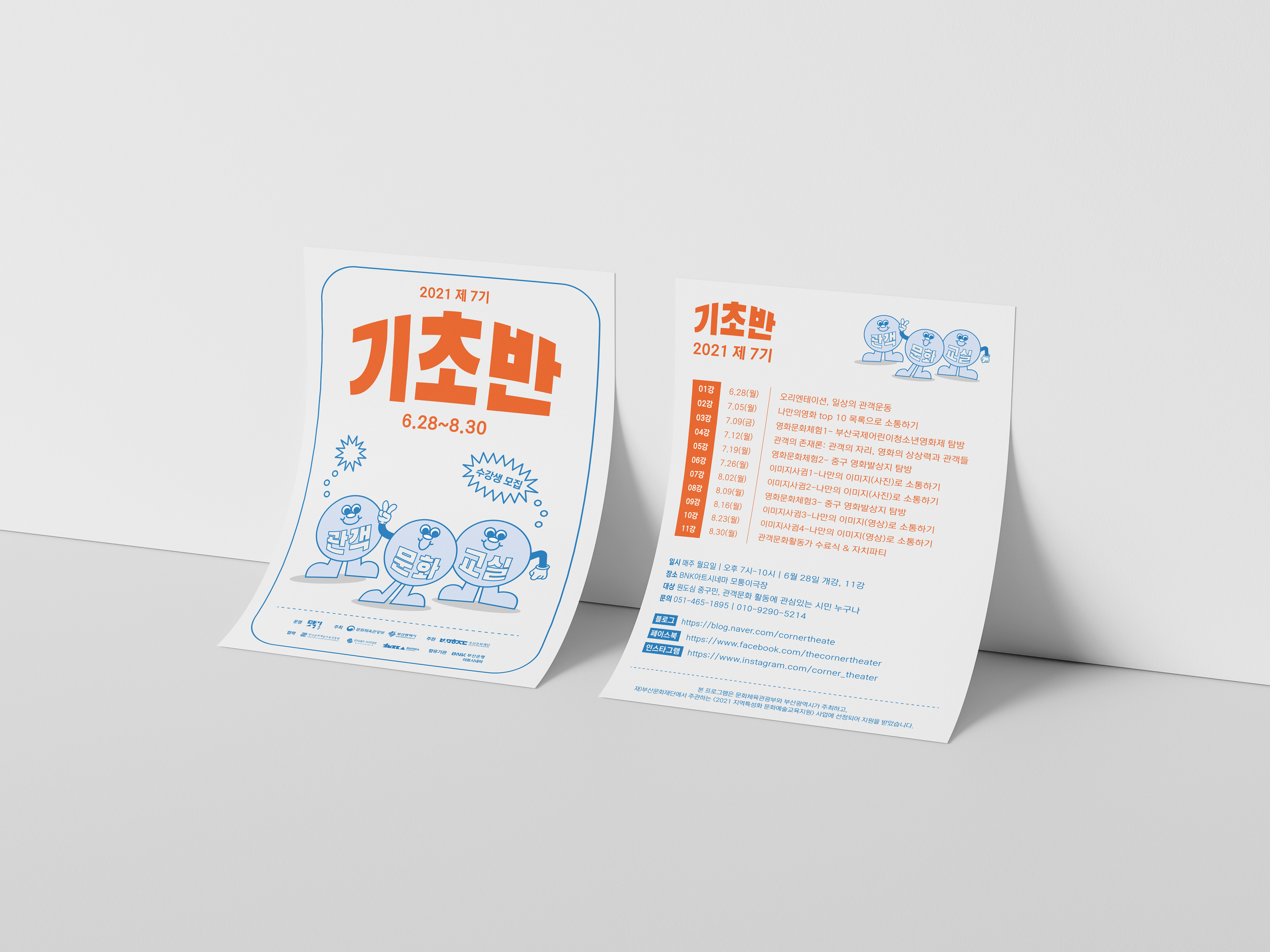 레트로를 컨셉으로 기초반, 심화반의 컬러를 다르게 사용했습니다.