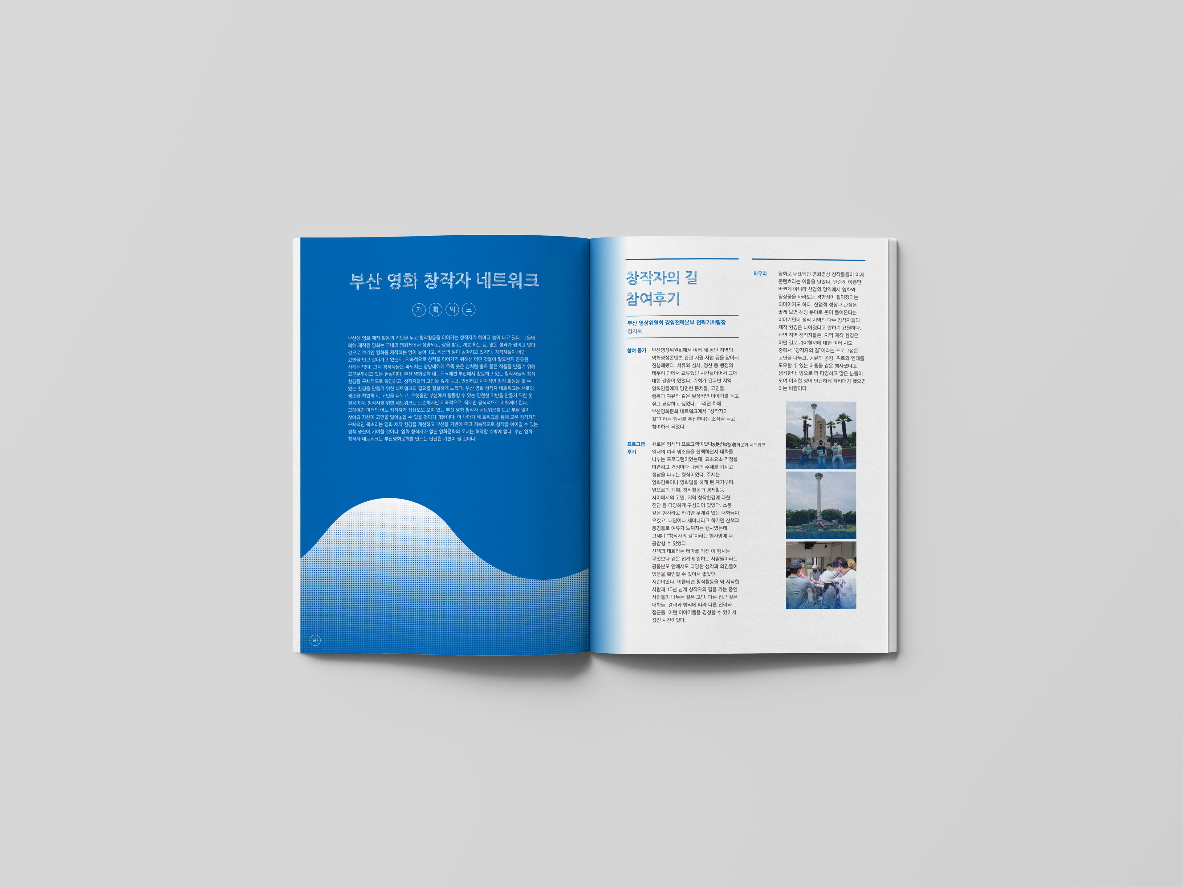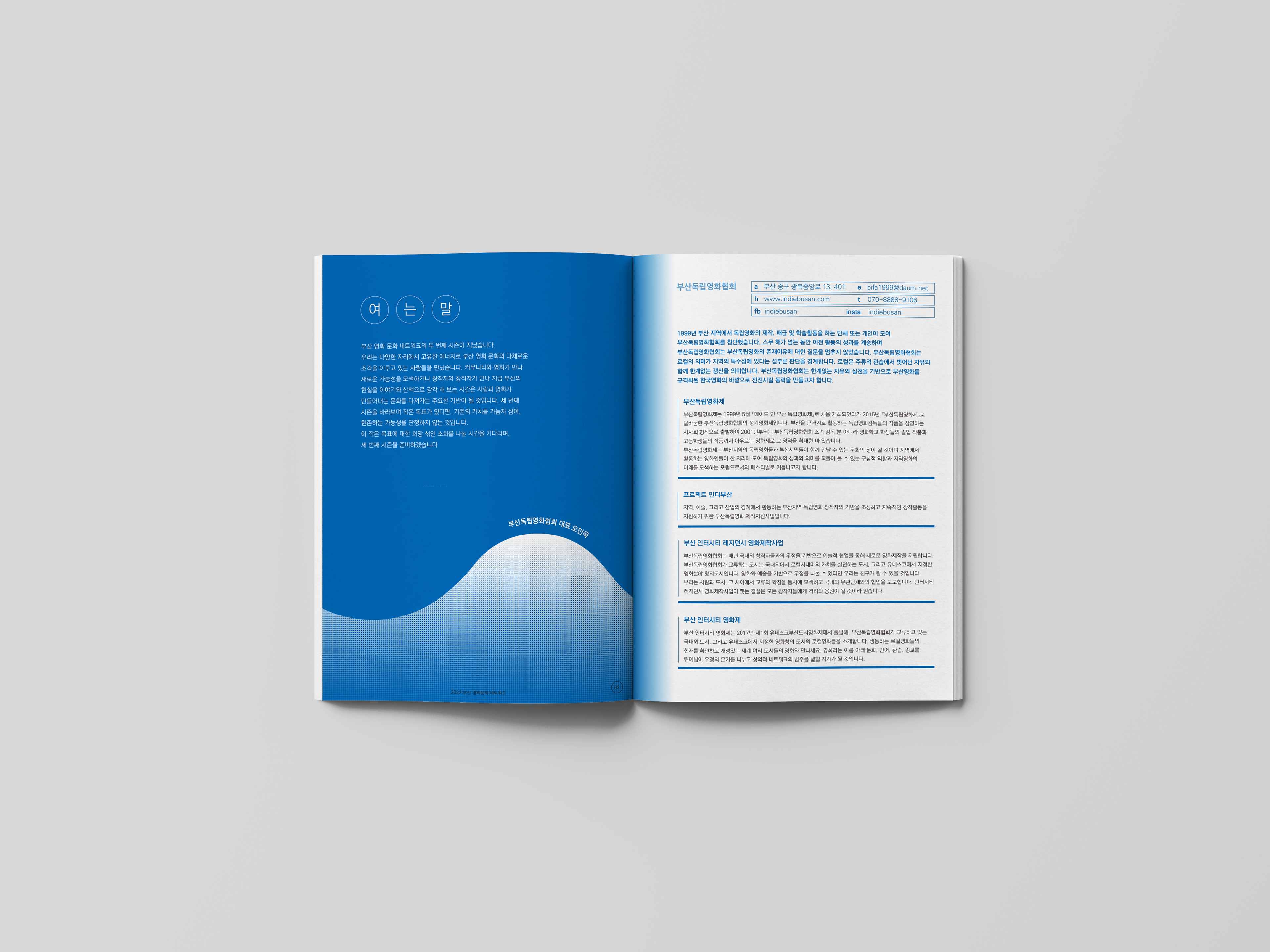 파도를 형상화하여 북 디자인을 진행했습니다.