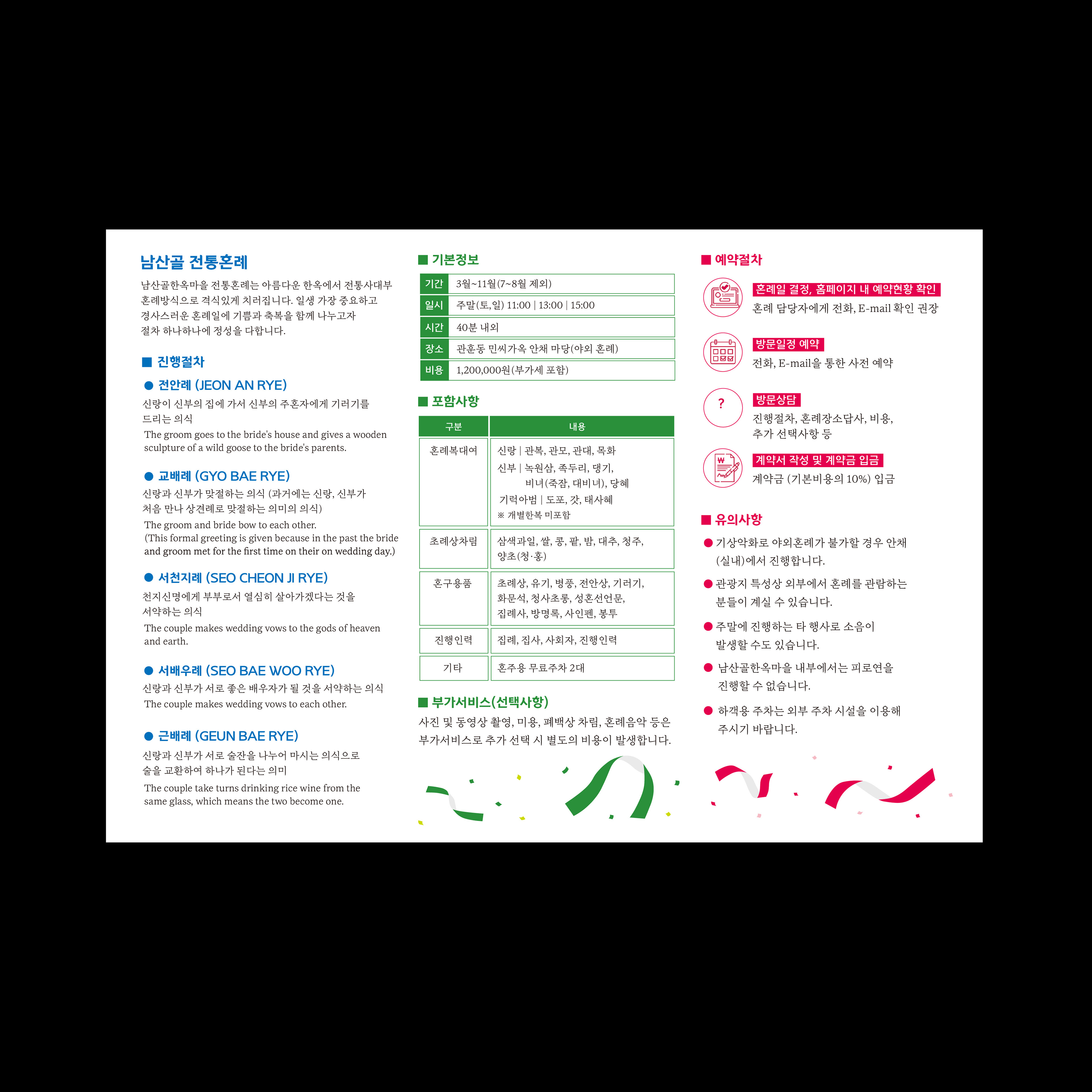 전통 혼례복에 사용되는 색을 키컬러로 잡아 디자인했습니다.
