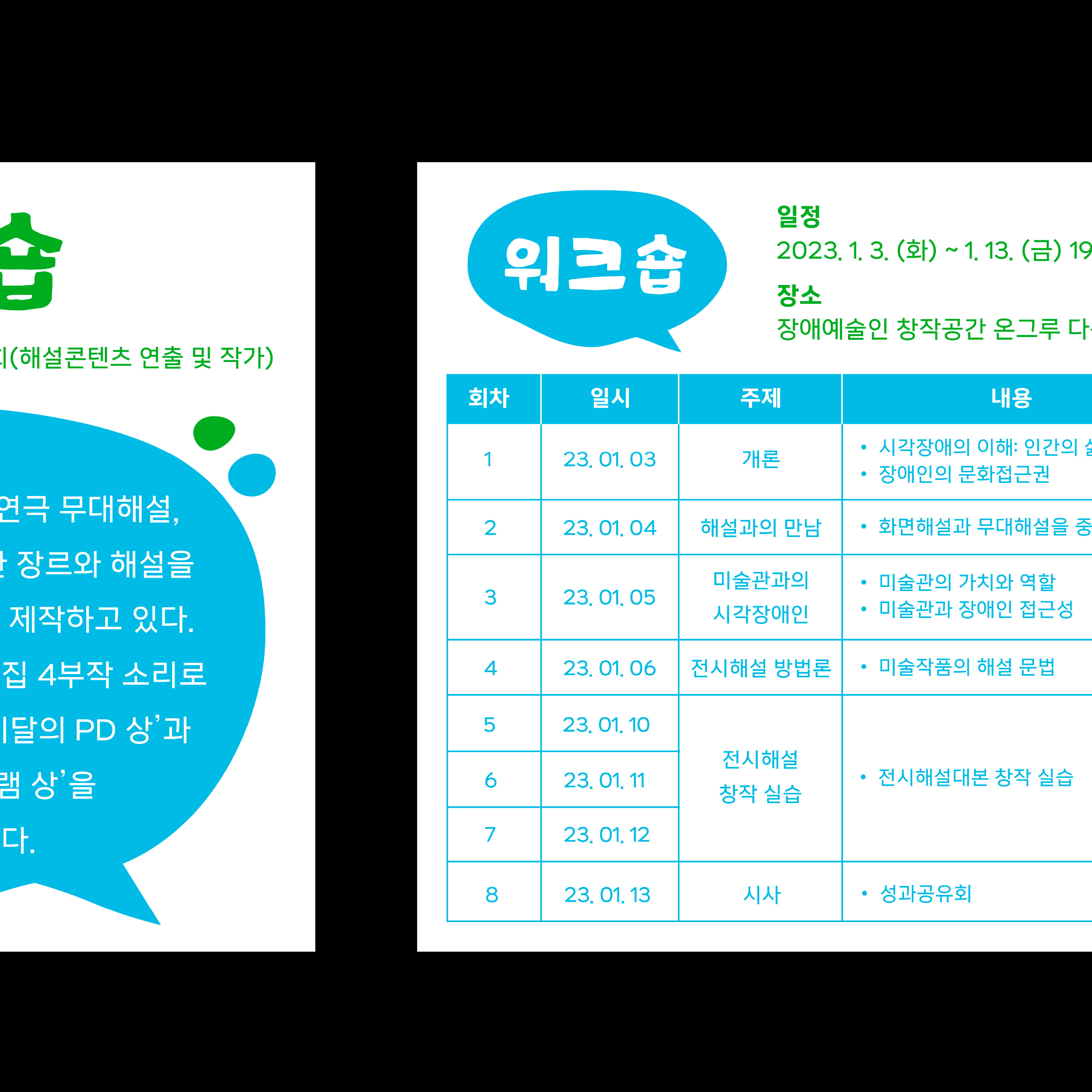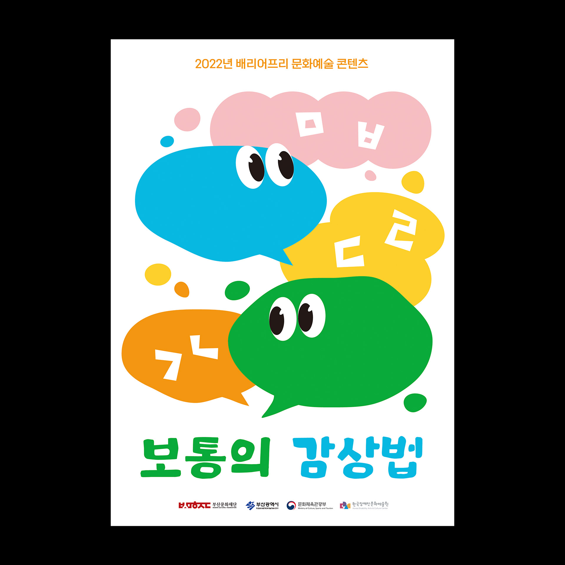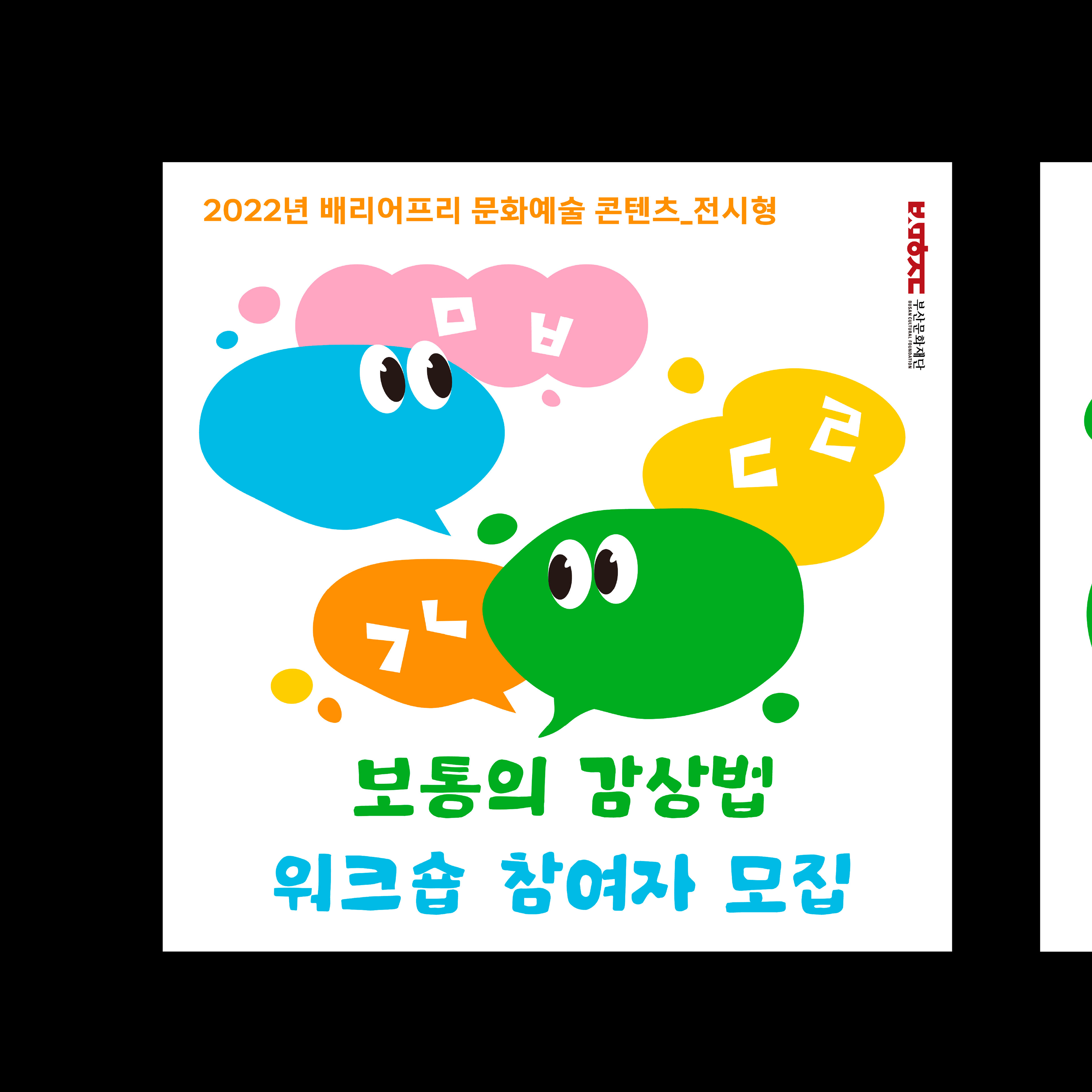 화면 해설 워크숍을 표현할 수 있도록 여러 색색의 말풀선에 눈을 달아 캐릭터화하였습니다.