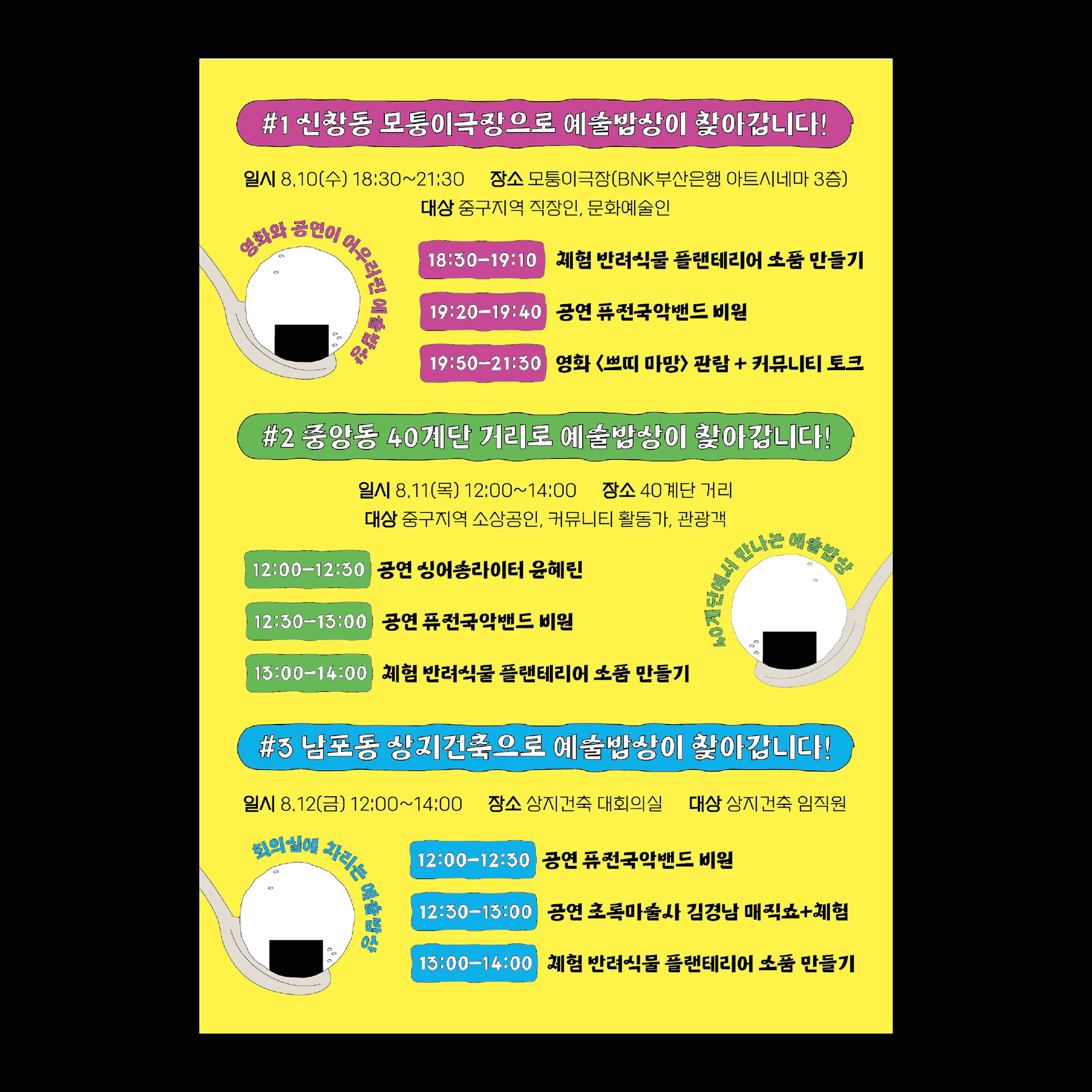 문화예술 공연, 체험과 도시락이 함께하는 예술밥상 브랜딩을 진행했습니다.