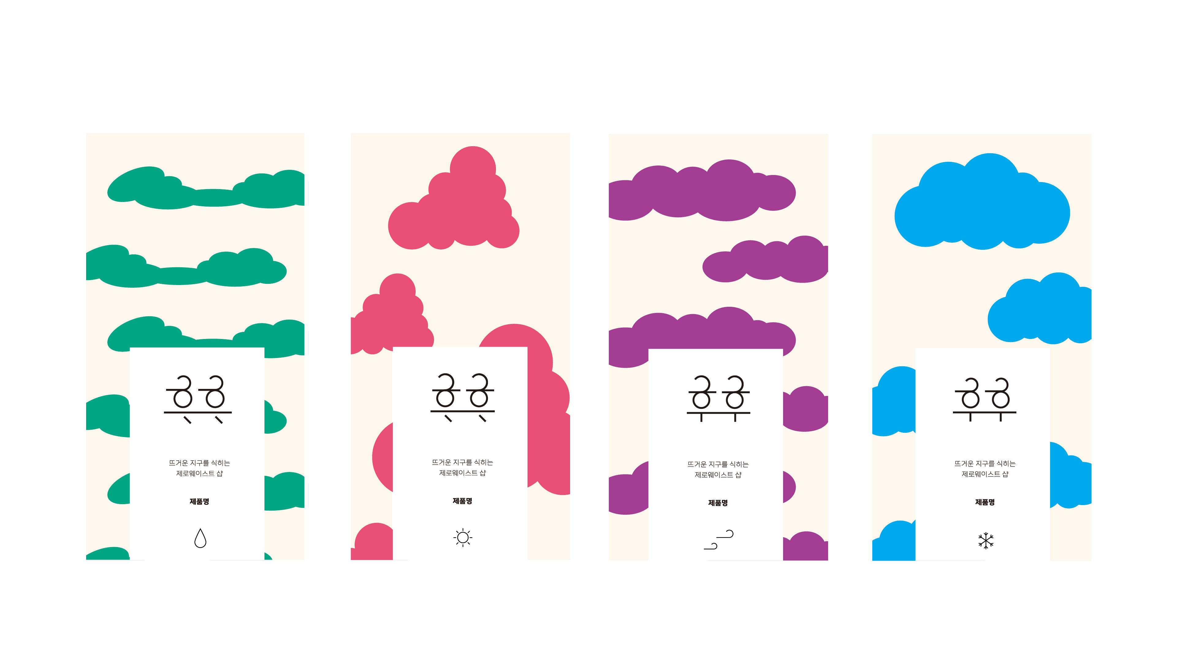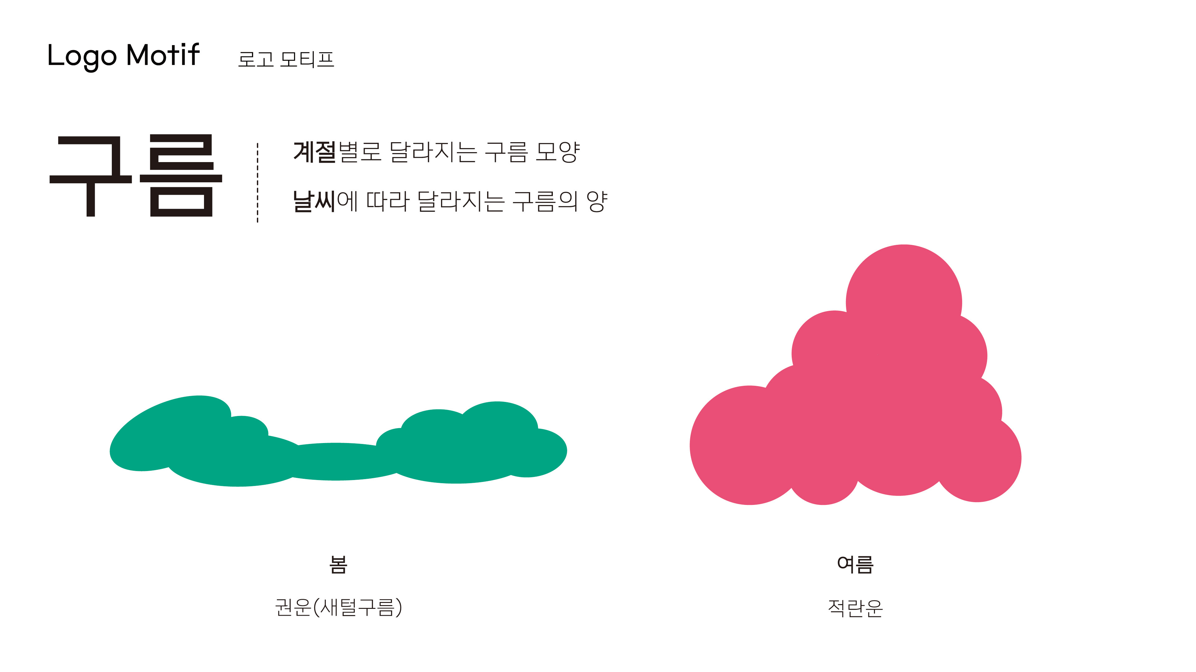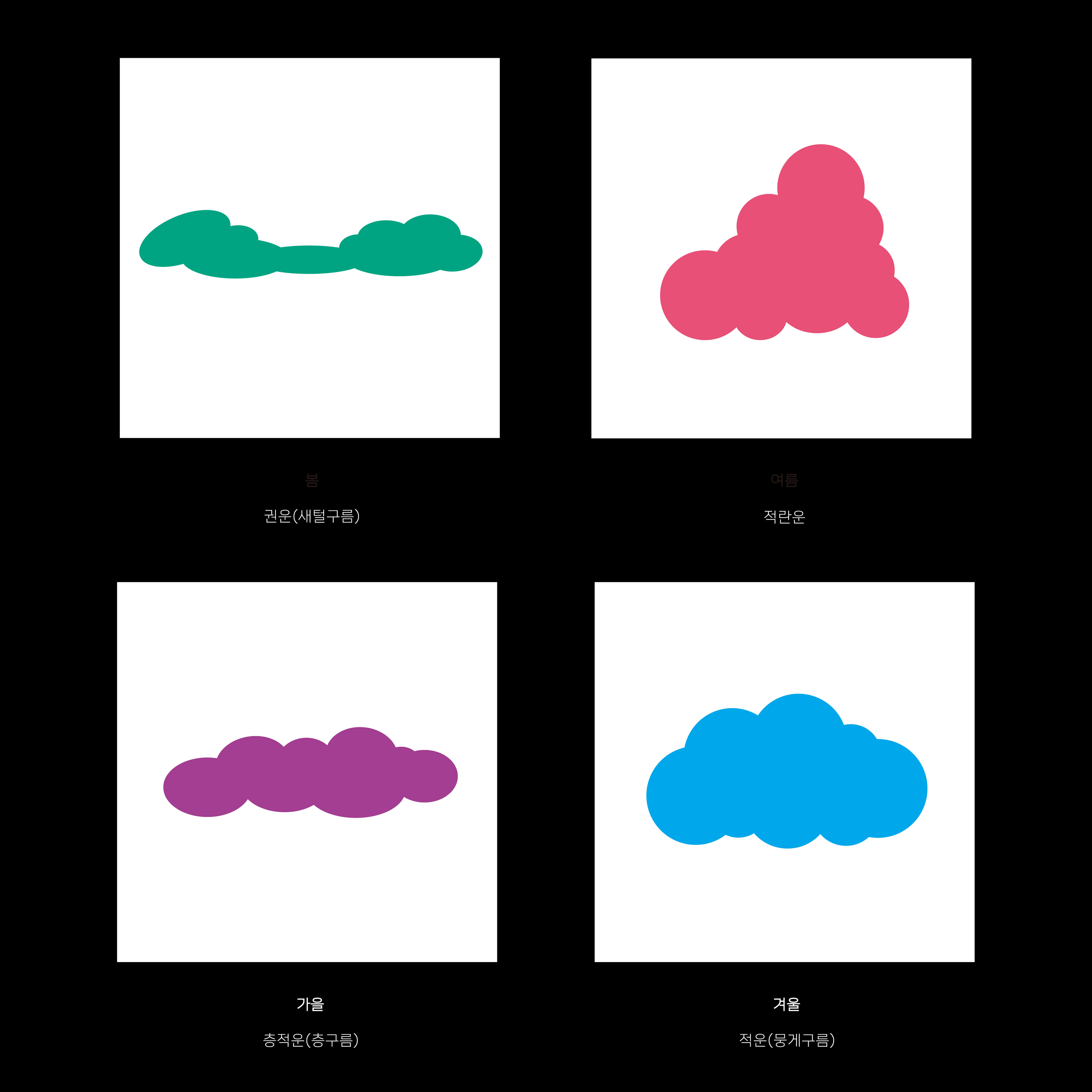 4계절이란 주요 컨셉에서 각 계절별로 볼 수 있는 구름모양과 색을 지정했습니다.