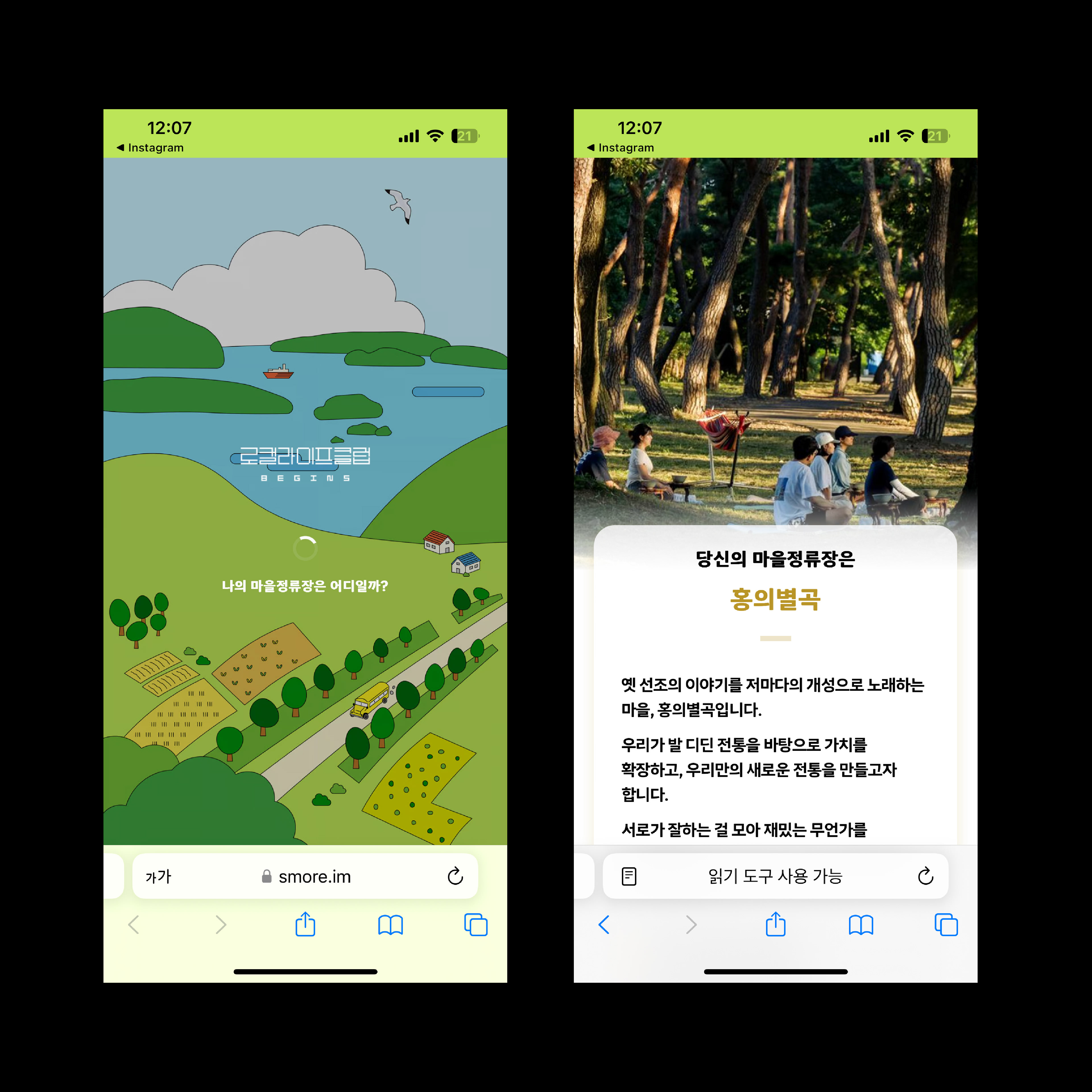 청년마을의 '로컬 라이프' 키워드를 바탕으로 제작한 스모어 페이지입니다.