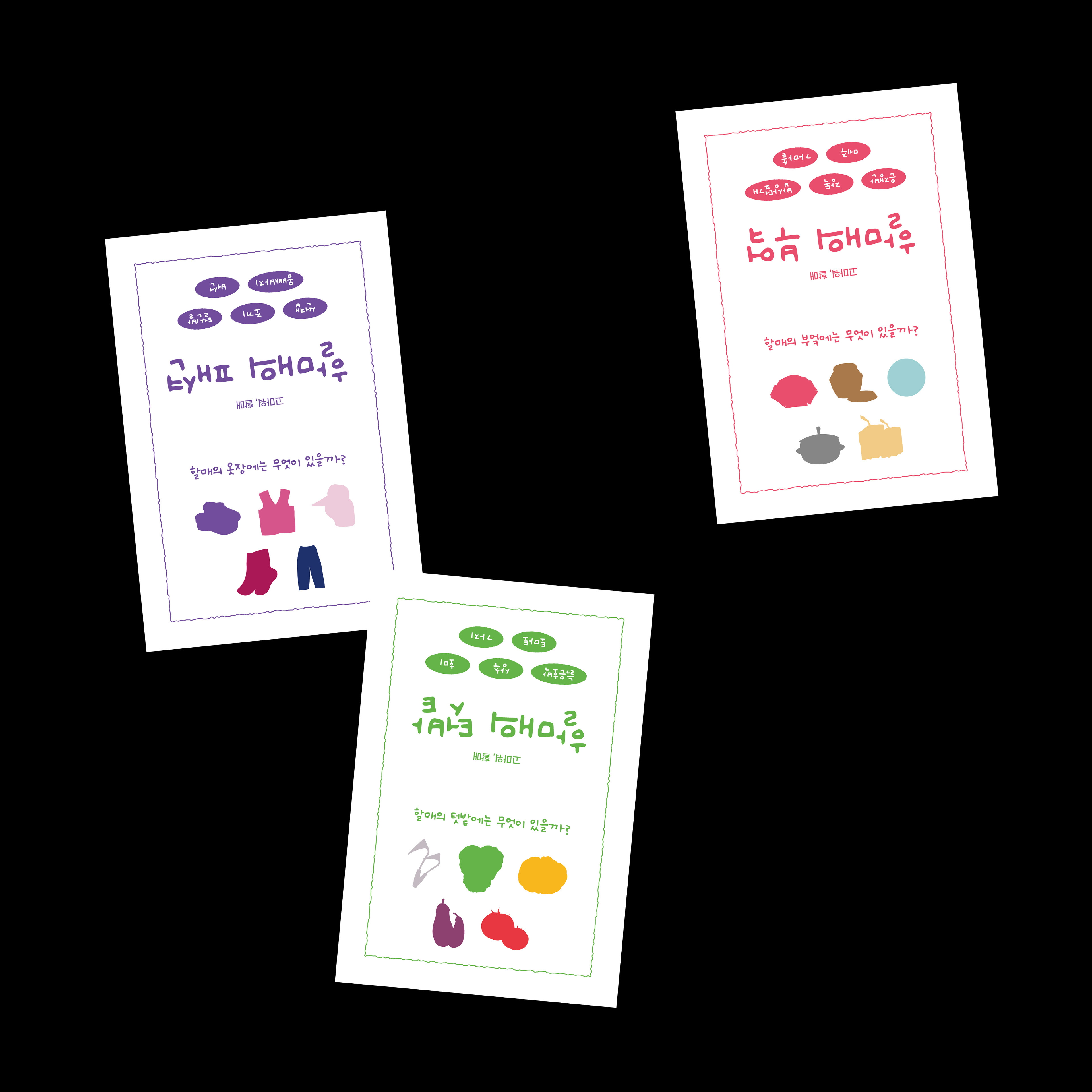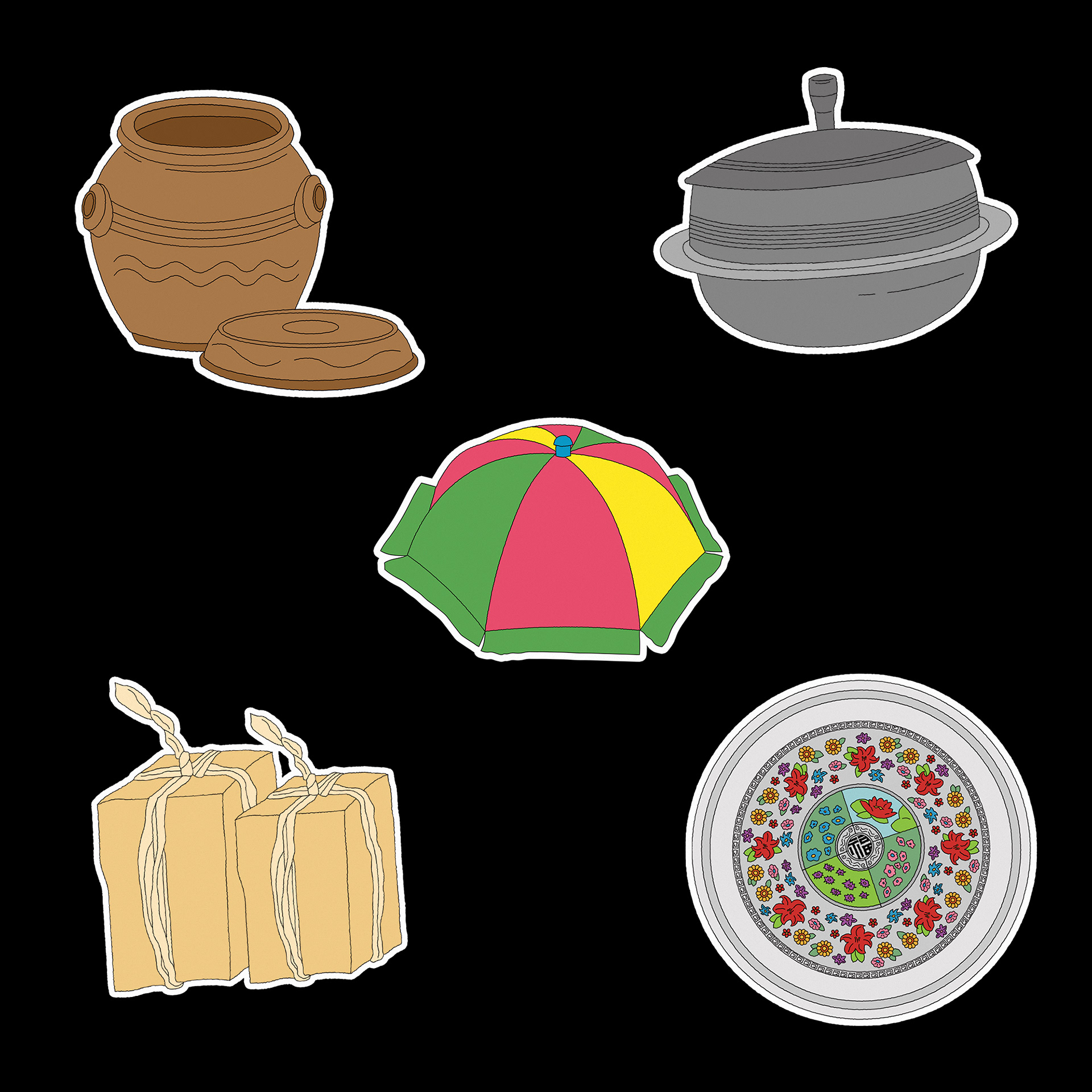 할머니 집에서 볼 수 있는 의식주 아이템들을 일러스트화 했습니다.