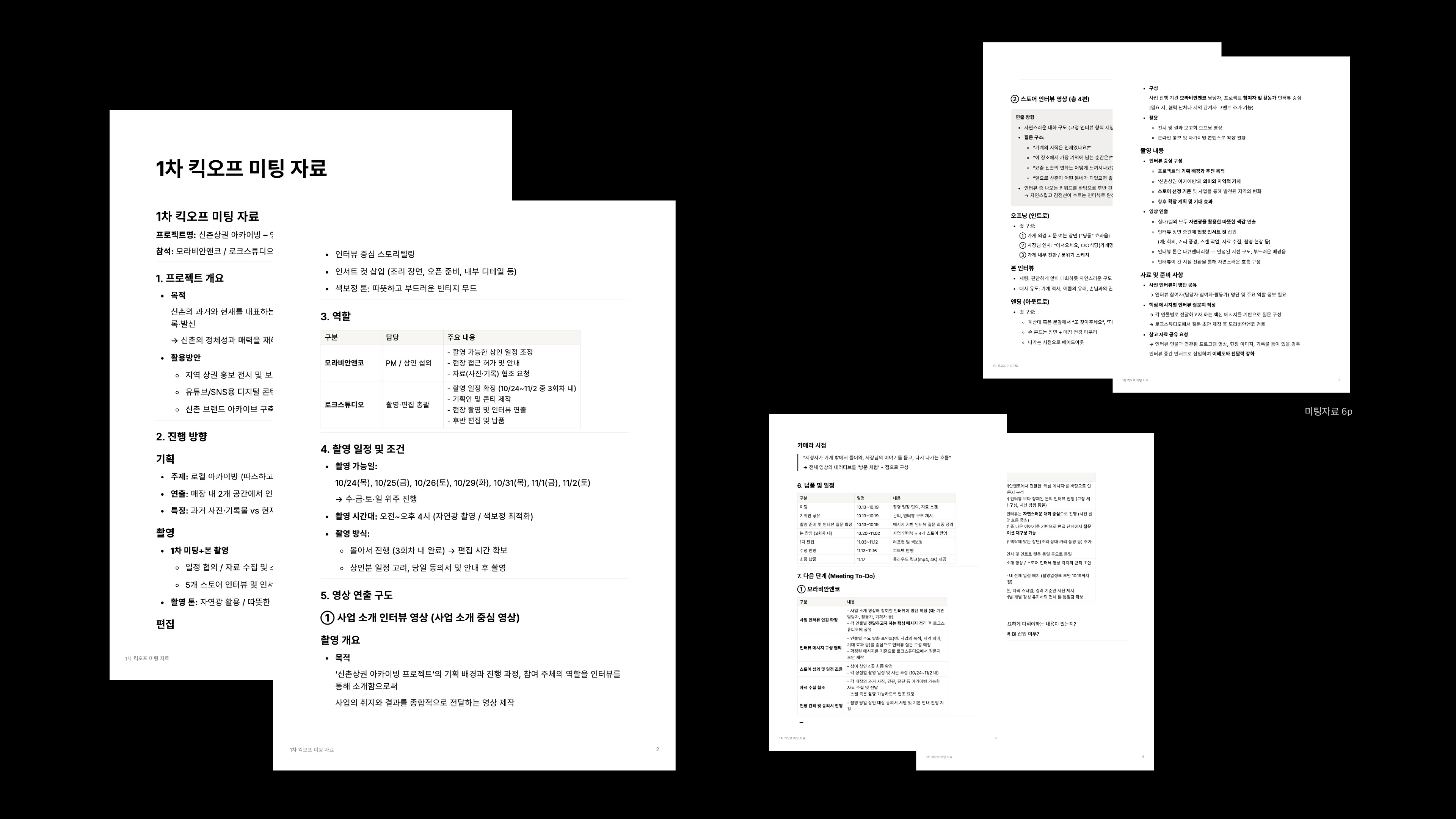 2. 킥오프/회의 자료 정리본 – 제작 방향, 역할 분장, 일정/현장 조건 합의