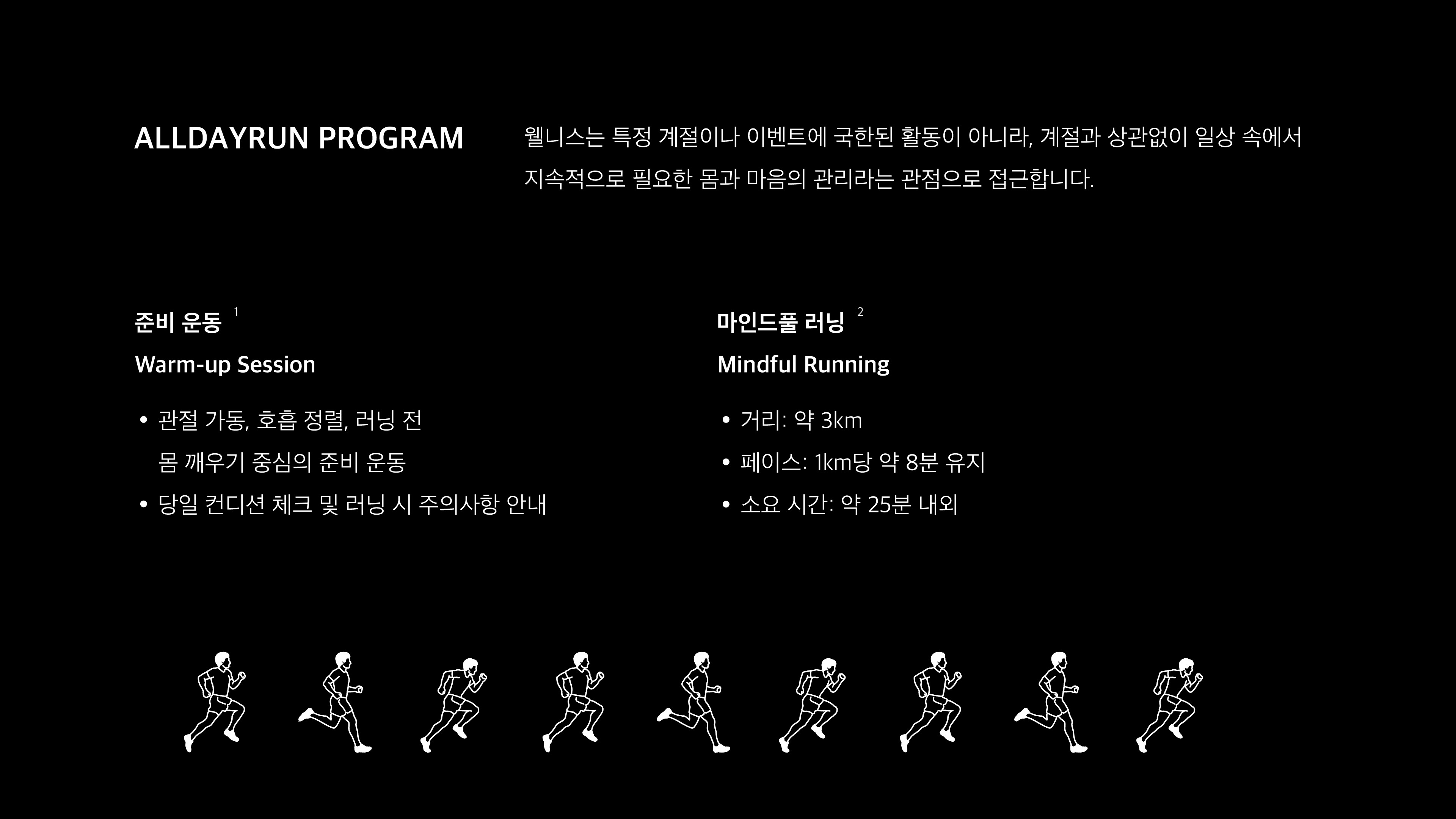 '마인드풀'의 가치를 담아 '부담 없는 러닝' 이미지를 강조합니다.