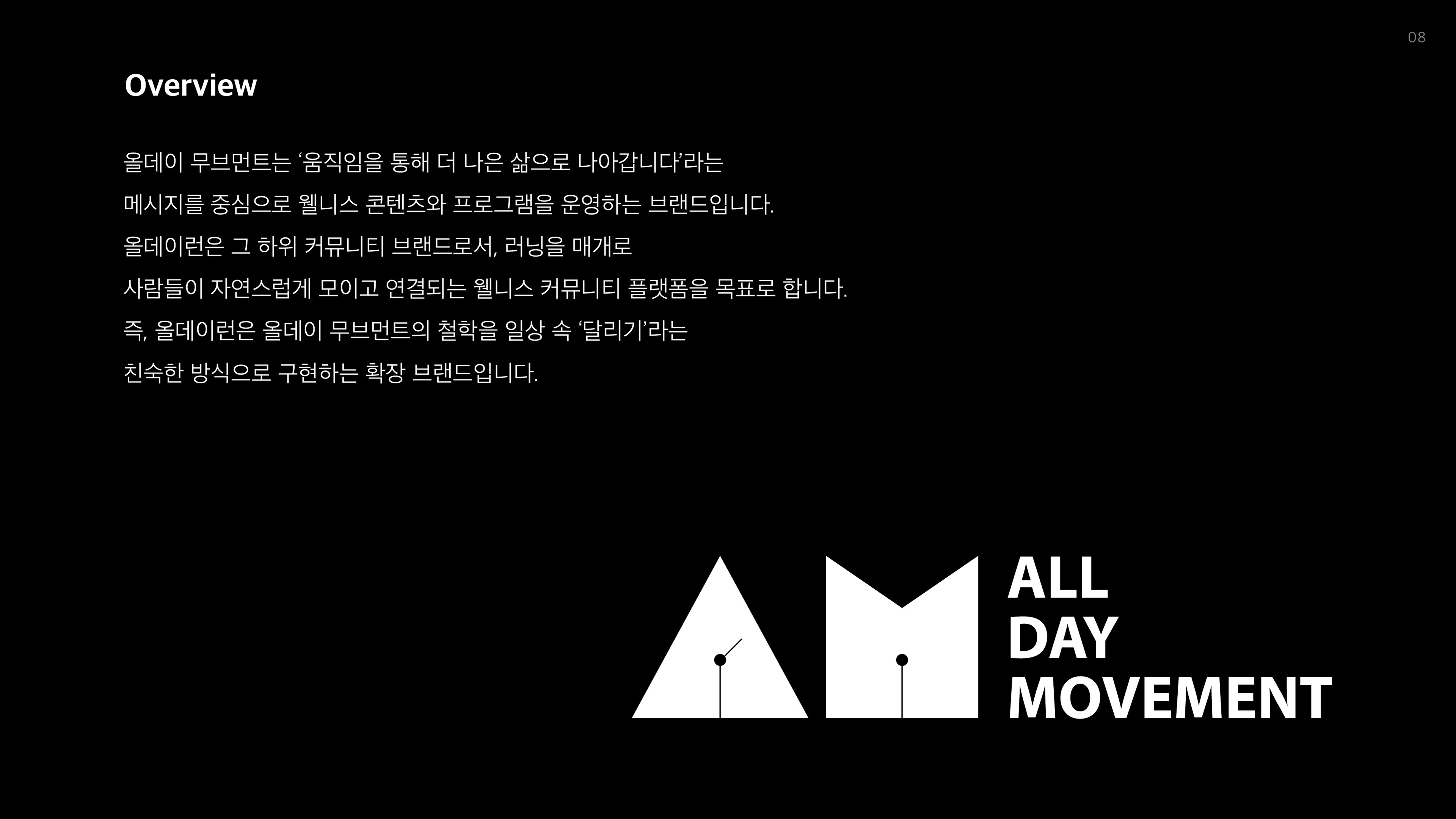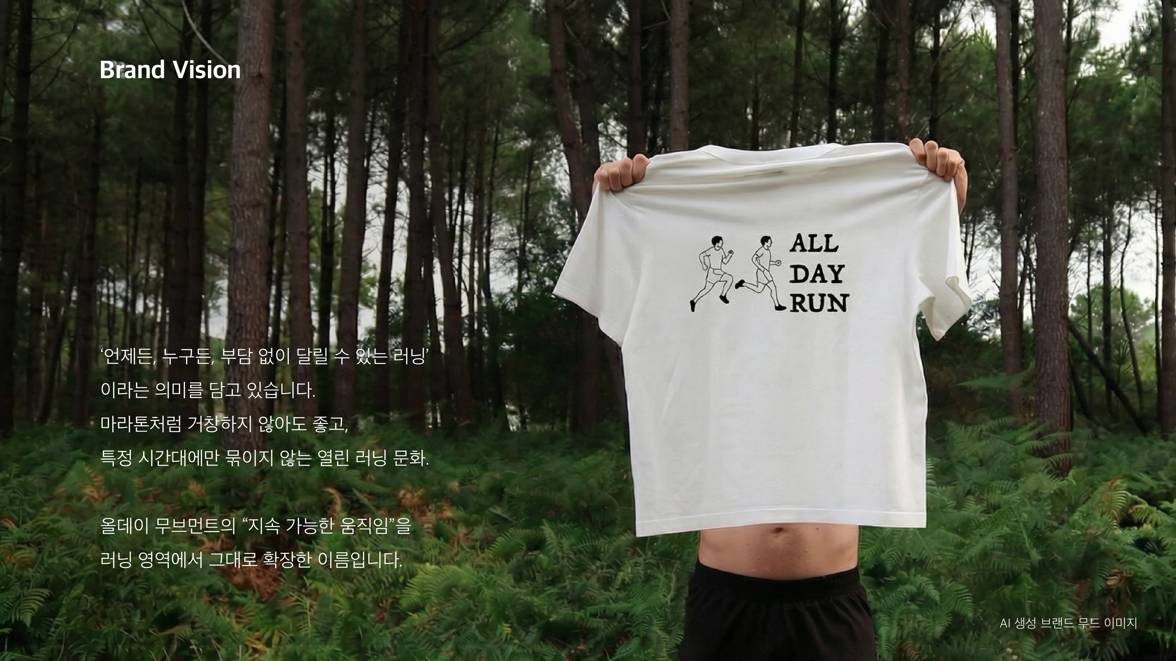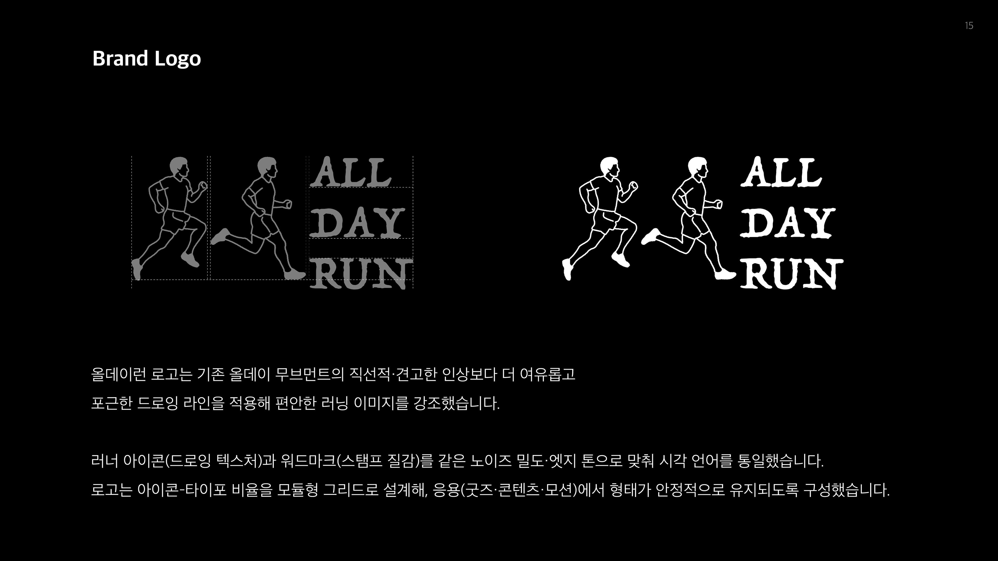 올데이런의 브랜드 스토리·가치·미션을 로고/모티프/컬러로 번역해 BI로 구축했습니다.