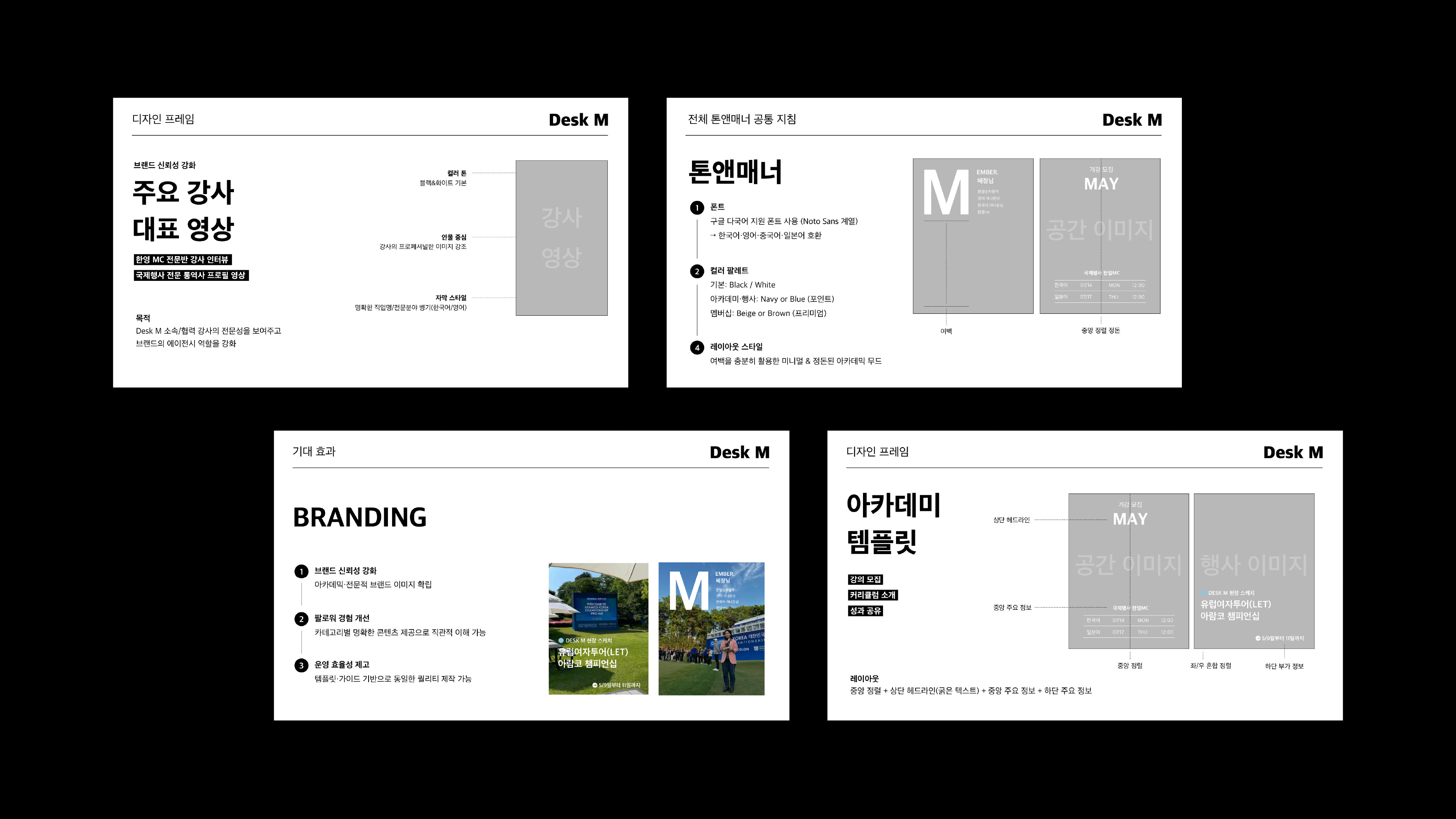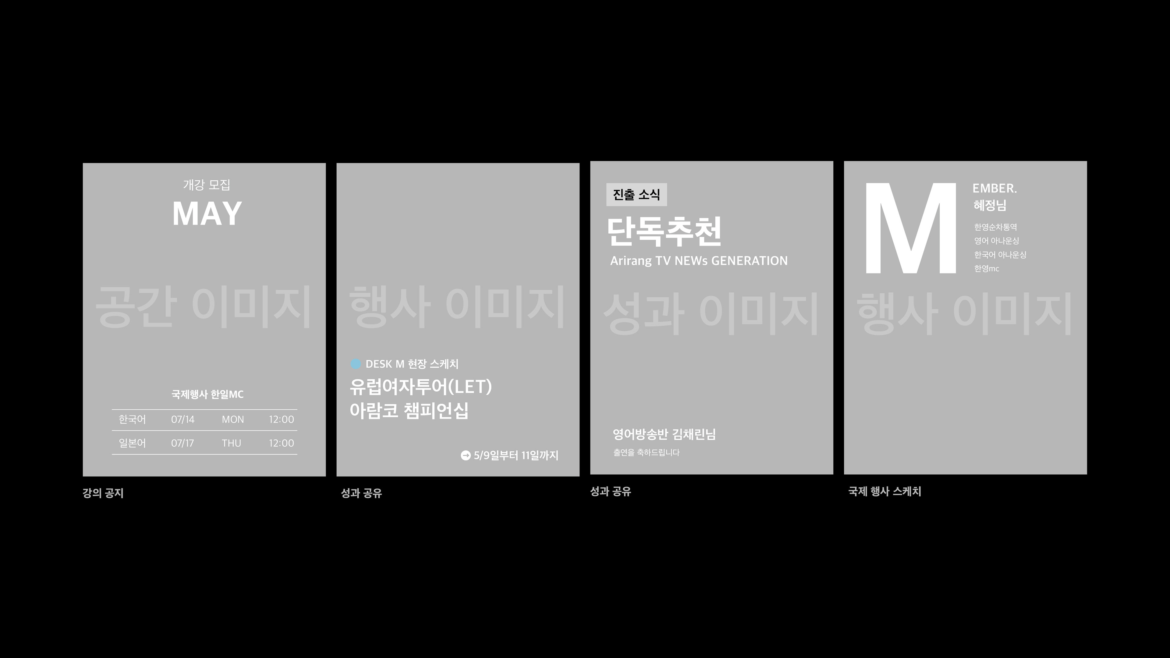 아카데미/강사/행사/성과 공유 등 카테고리별 프레임 제안
